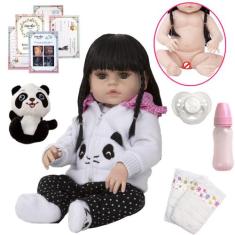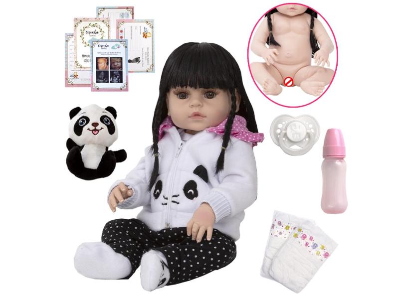 Boneca Bebê Reborn Pandinha 52cm 100% Silicone + 13 Itens