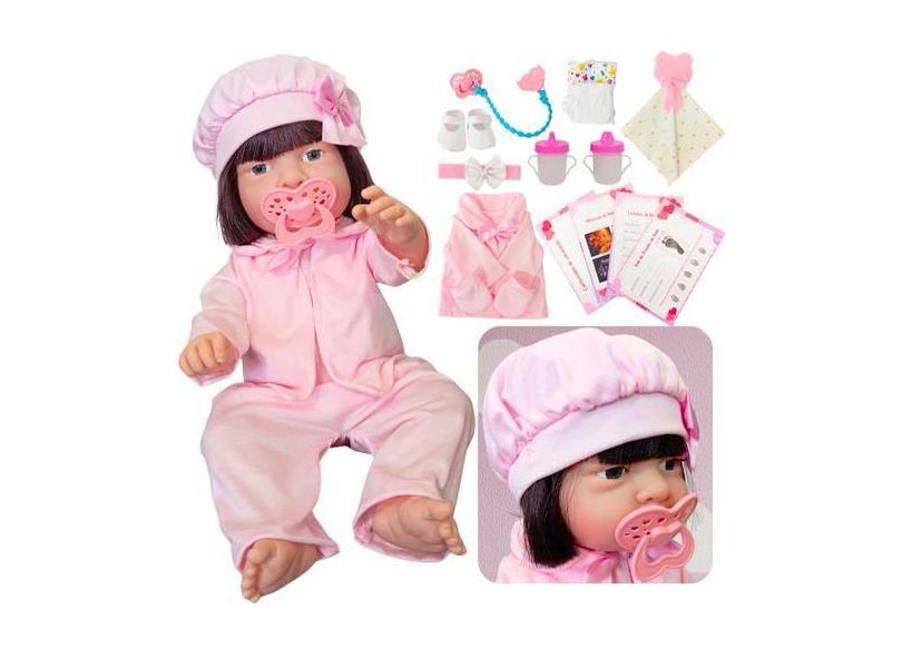 Boneca Bebê Reborn Realista 100% Vinil Conjunto De Roupa Chupeta Mamad