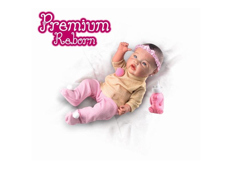 Boneca Bebê Reborn Realista Com Mamadeira Ursinho Rosa