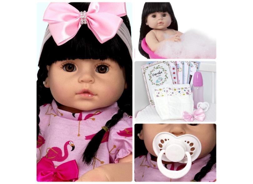 Boneca Bebe Recem Nascida Menina Linda Vestido Rosa Enxoval