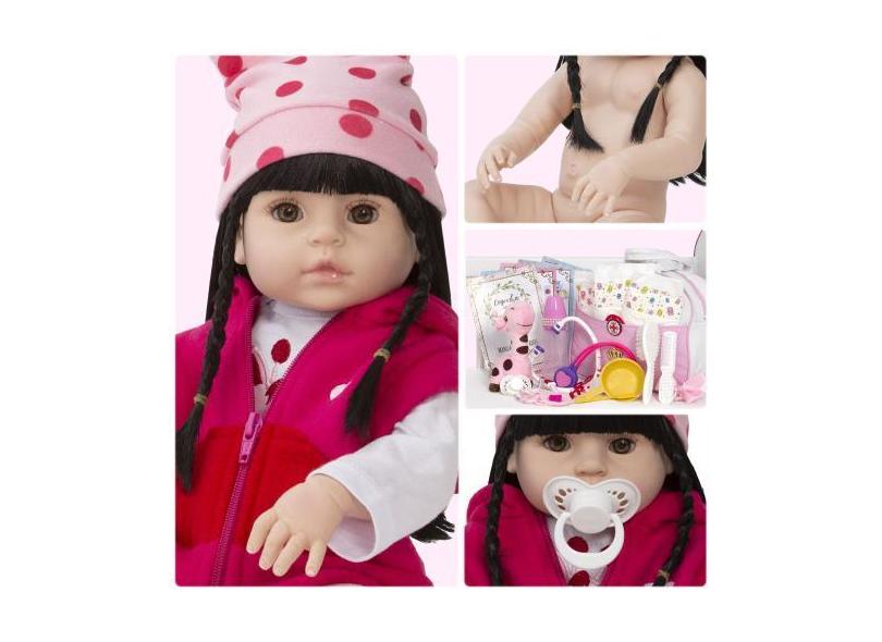 Boneca Bebê Tipo Reborn Morena Girafinha Linda 25 Acessórios - Cegonha