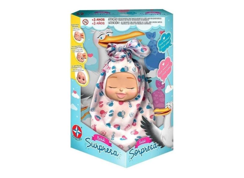 Boneca Boneco Bebê Surpresa Chá Revelação Estrela Brinquedos Menino Ou Menina Com 25cm Chupeta Fralda E Cobertor