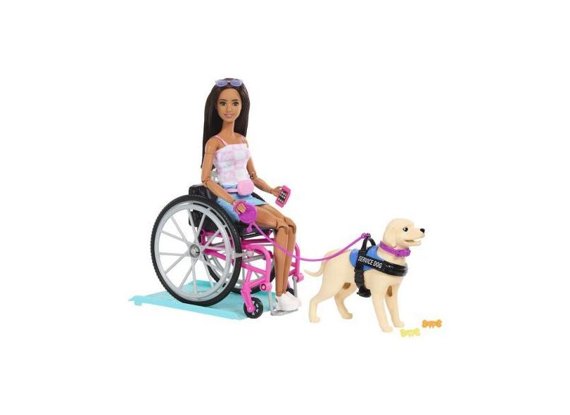 Boneca Com Cadeira De Rodas Barbie Hjy85 - Com Cão De Serviço E Acessó