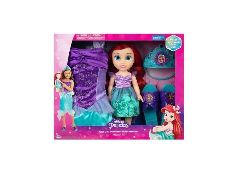 O menor preço encontrado no Brasil para Boneca Disney Princesas Ariel Kit Com Fantasia Sapatos e Acessórios Tam. Único Multikids - BR2331 atualmente é R$ 319,92.