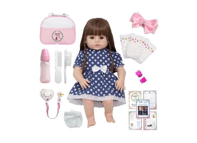 Boneca Estilo Reborn Laura Vestido Bolinha Enxoval Completo - Cegonha