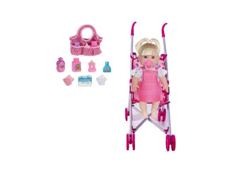 Boneca Infantil Cabelo Loiro Danadinha e Carrinho e Bolsinha - Milk Br