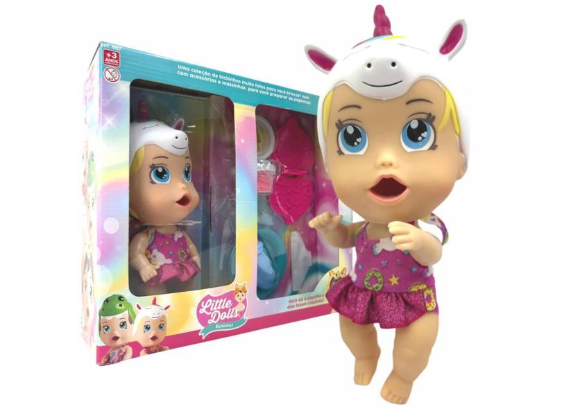 Boneca Little Dolls Bichinhos Brinquedo Bebê Come Papinha Faz Caquinha Unicórinio