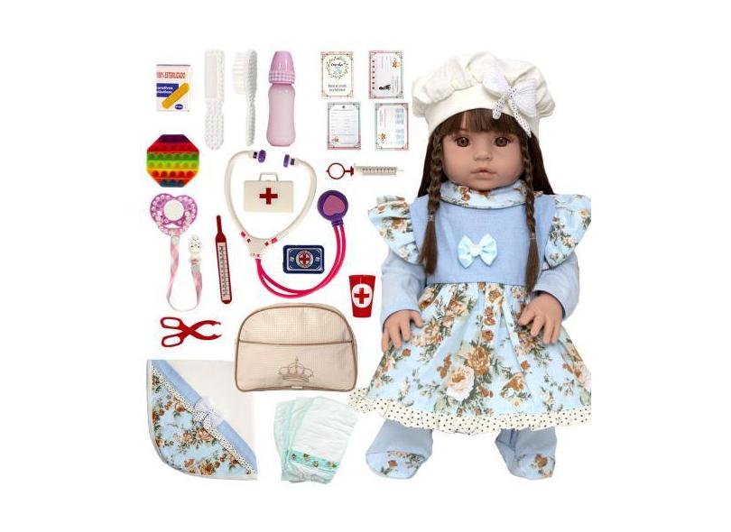 Boneca Menina Estilo Reborn + Bolsa Maternidade E Itens Lol - Cegonha