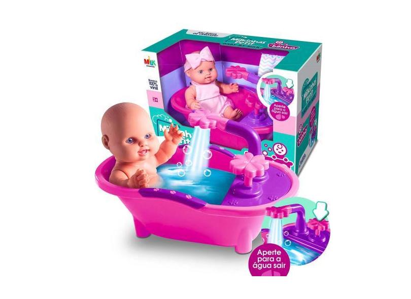 Boneca Milkinhas Petit Banho Com Banheira Que Sai Água