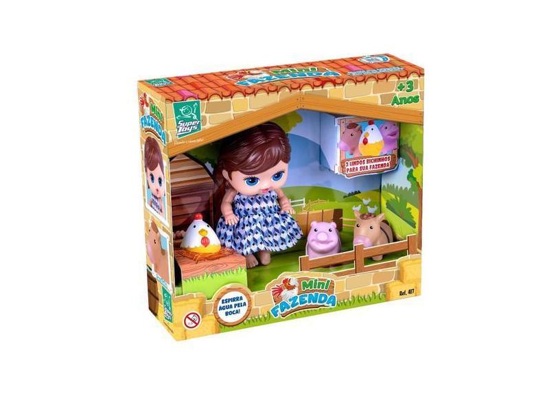 Boneca Mini Fenda Com 3 Animais Galinha Porco E Cavalo - Super Toys