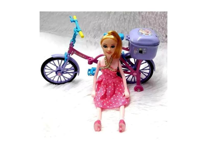 Boneca Na Bicicleta A Pilha Com Luz E Som Anda Sozinha. - Dm Toys