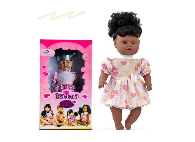 Boneca Negra Grande Vinil Com Cabelo 40 Cm Menina Barato - Adijomar Br
