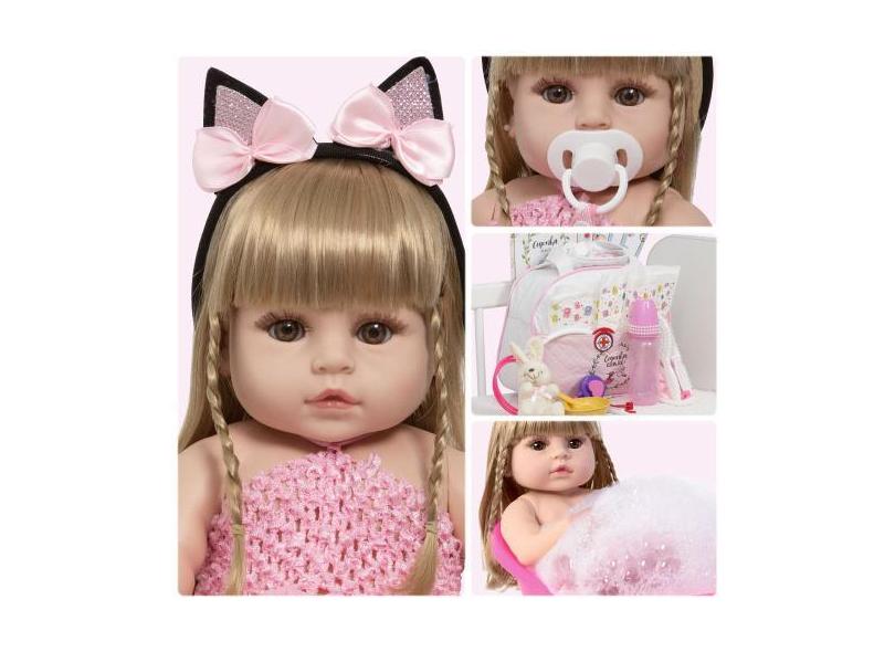 Boneca Reborn 100% Silicone Bailarina Loira Kit Acessórios - Cegonha R