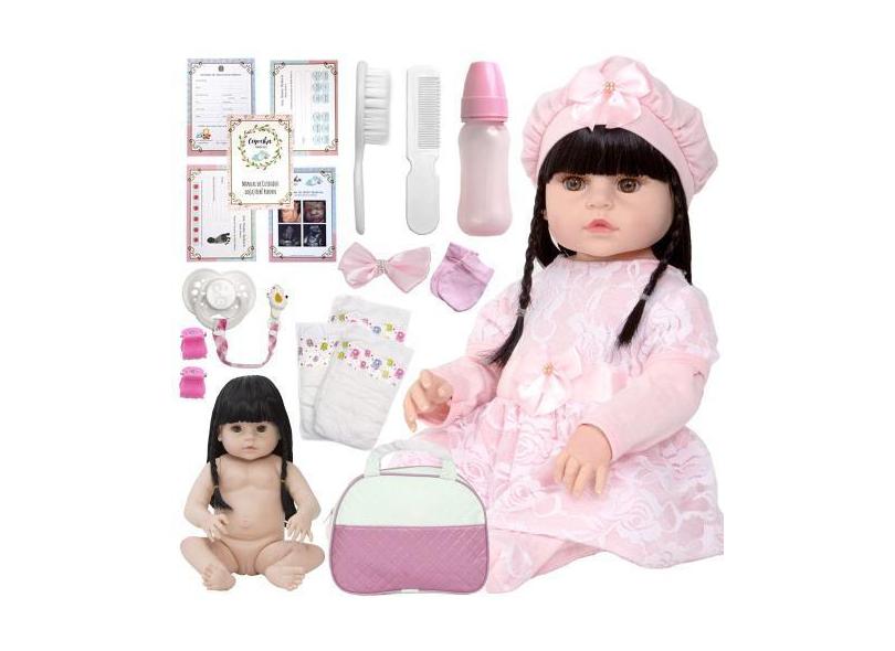 Boneca Reborn 100% Silicone Princesa Morena 20 Itens Bolsa - Cegonha R