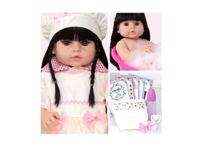 Boneca Reborn Bebê Abigail Linda 100% Silicone 13 Acessórios - Cegonha
