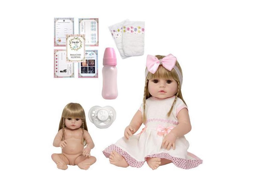 Boneca Reborn Bebê Loira Fofa Vinil Siliconado 13 Acessórios - Cegonha