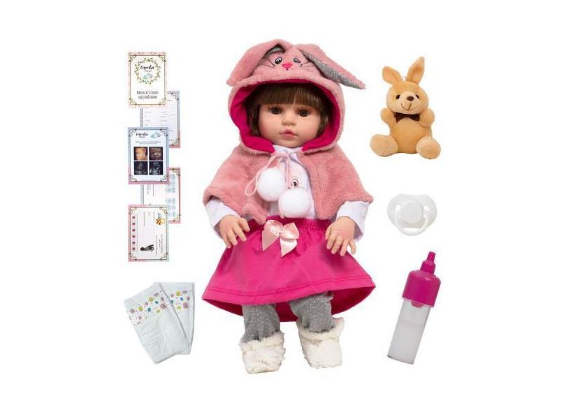 Boneca Reborn Bebê Menina Coelhinha Com Kit 12 Acessórios - Cegonha Re