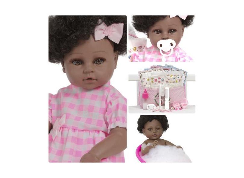 Boneca Reborn Bebê Negra Fofinha Com Bolsa Kit Acessórios - Cegonha Re