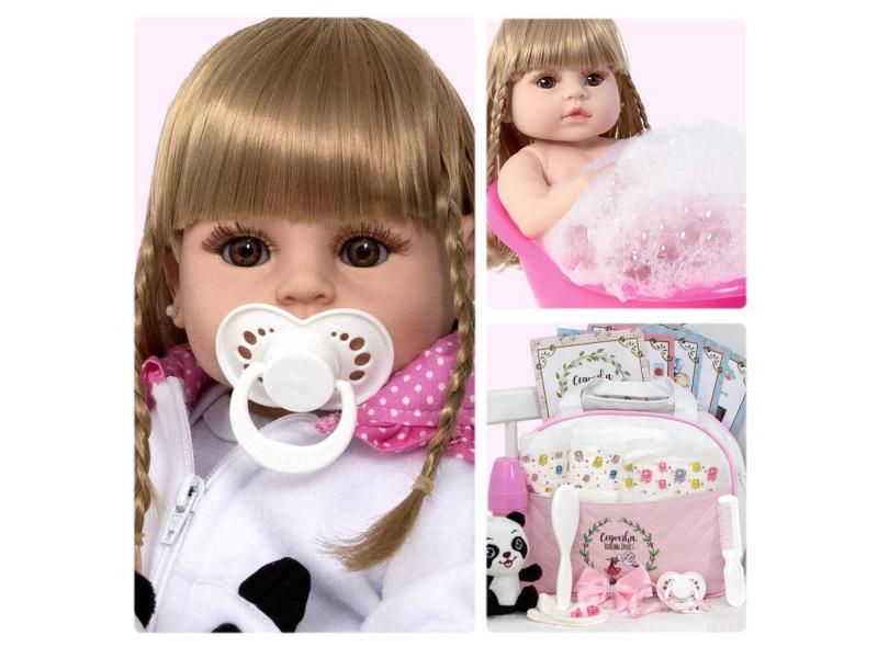Boneca Reborn Bebê Panda 100% Silicone + Vários Acessórios