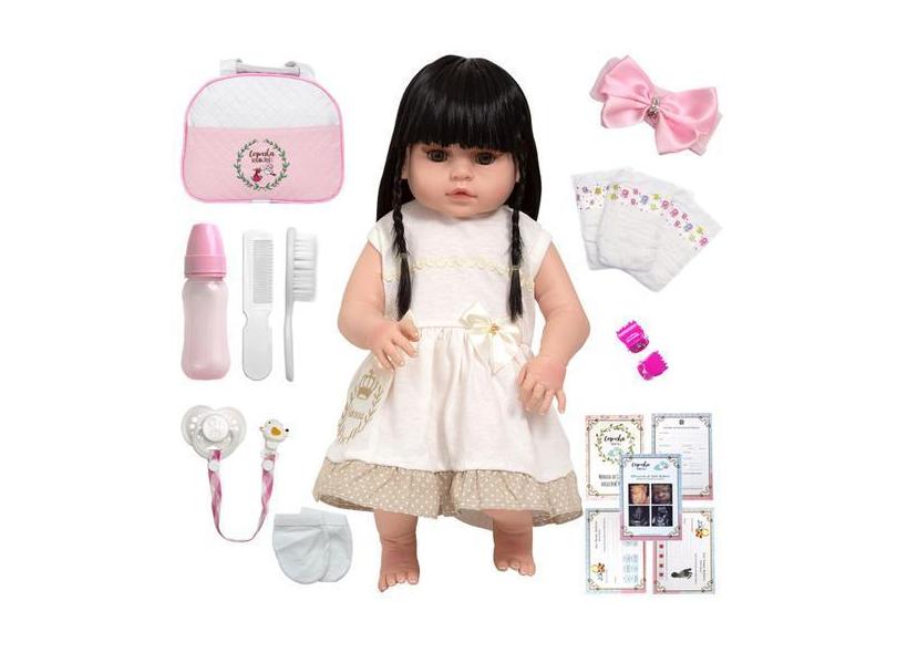 O menor preço encontrado no Brasil para Boneca Reborn Bonita Morena Corpo Silicone + Kit Acessórios - Cegonha atualmente é R$ 171,96.