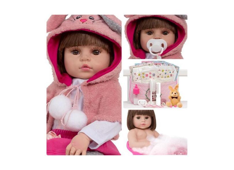 Boneca Reborn Coelhinha Linda Olhos Castanhos Pode Banho - Cegonha Reb