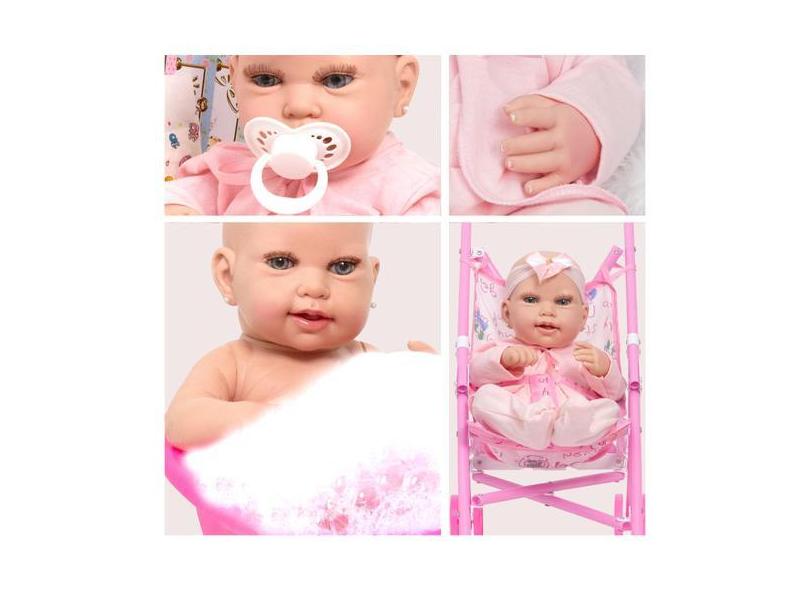 Boneca Reborn Com Carrinho Infatil Conjunto Pagão Rosa Lindo - Cegonha