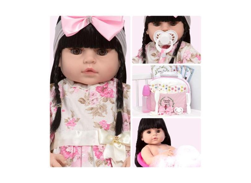 Boneca Reborn De Silicone Morena Com Lindo Enxoval Itens - Cegonha Reb