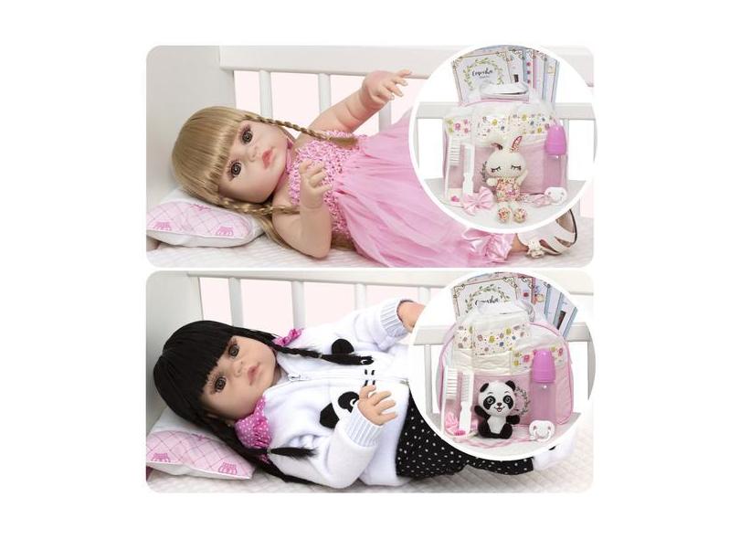 Boneca Reborn Gêmeas Panda Morena Bailarina Loira 43 Itens - Cegonha R