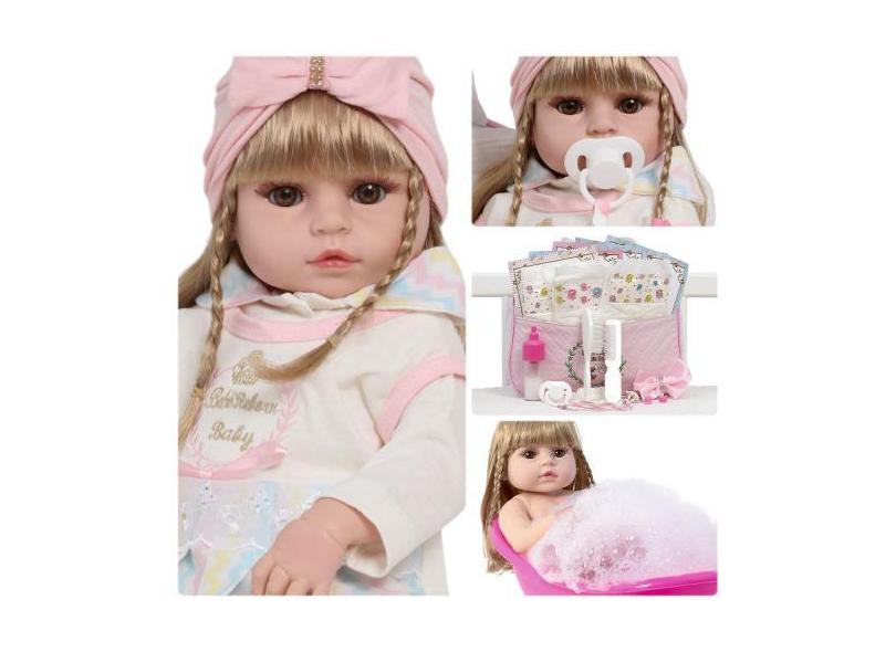 Boneca Reborn Grande Cabelo Loiro Linda Com Kit 20 Itens - Cegonha Reb