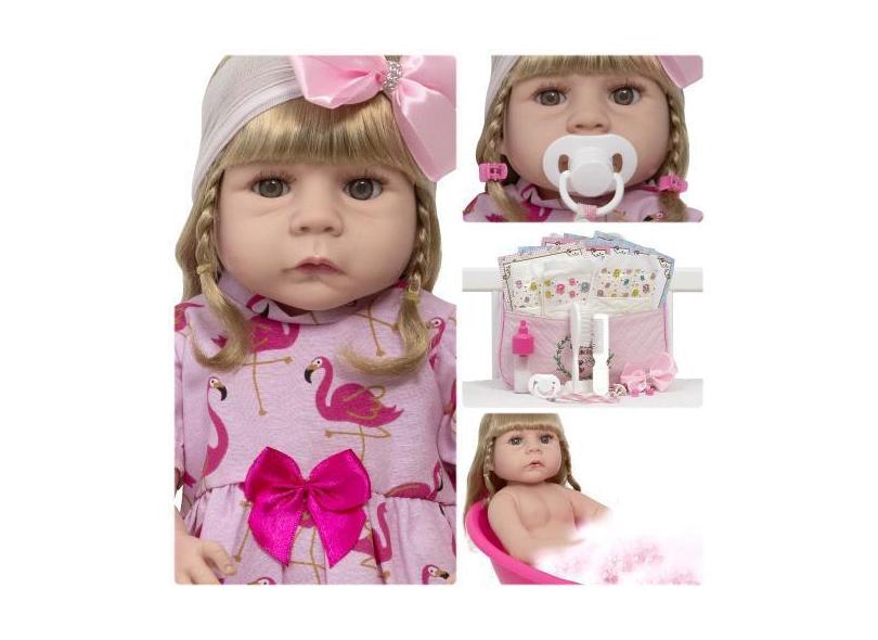 Boneca Reborn Loira Corpo De Silicone Enxoval Com Bolsa - Cegonha Rebo