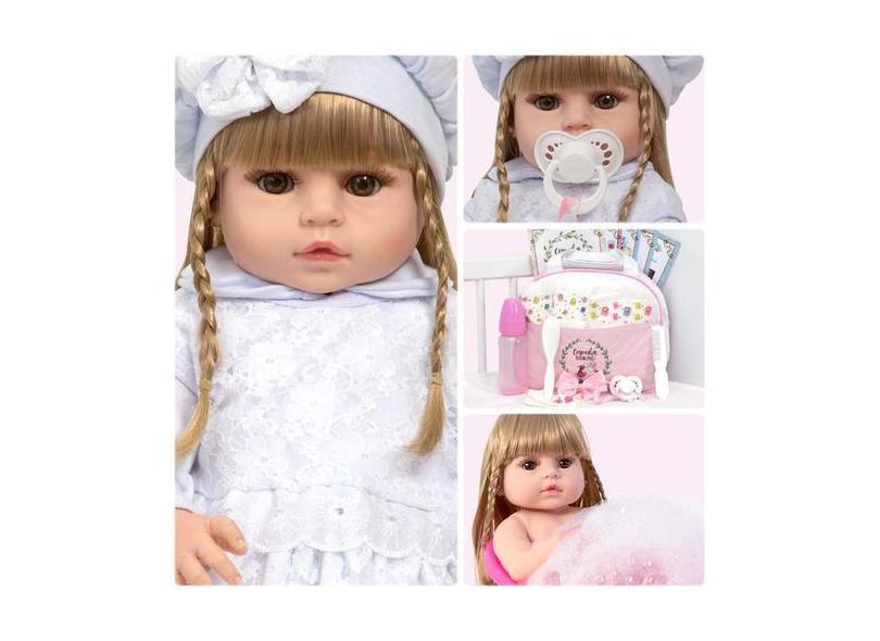 Boneca Reborn Loira De Silicone Bolsa Acessórios Enxoval - Cegonha Reb