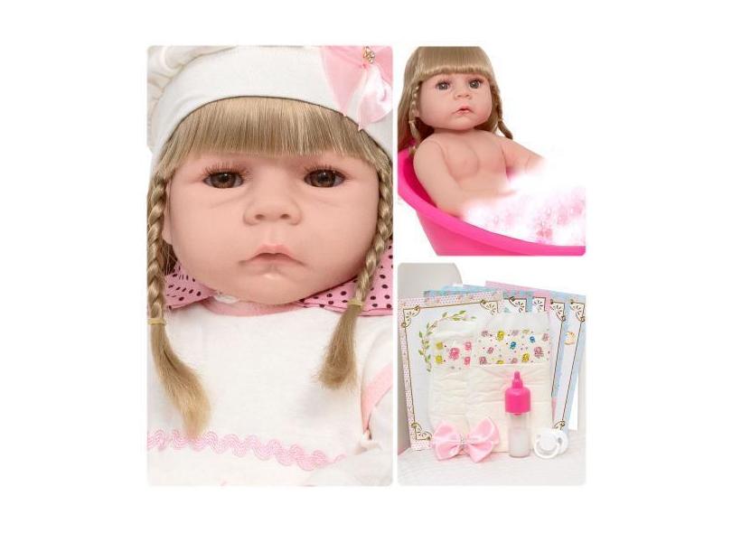 Boneca Reborn Loira Linda 100% Silicone 46cm Pode Dar Banho - Cegonha