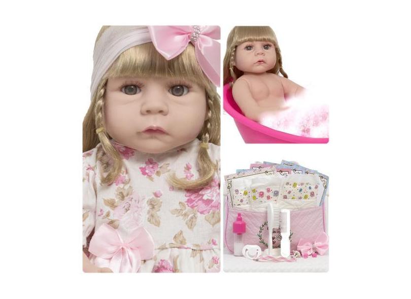 Boneca Reborn Loira Linda Corpo De Silicone Pode Dar Banho - Cegonha R