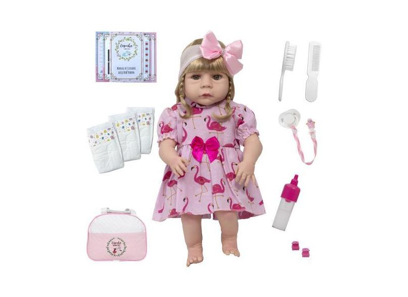 O menor preço encontrado no Brasil para Boneca Reborn Loira Linda Vestido Flamingo Enxoval Completo - Cegonha atualmente é R$ 209,75.