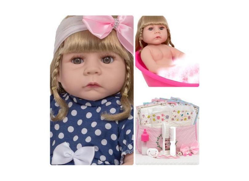 Boneca Reborn Loira Princesa Enxoval Completo 100% Vinil - Cegonha Reb