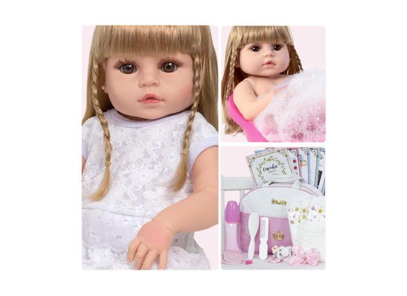 Boneca Reborn Loira Siliconada Olhos Castanhos Vários Itens - Cegonha