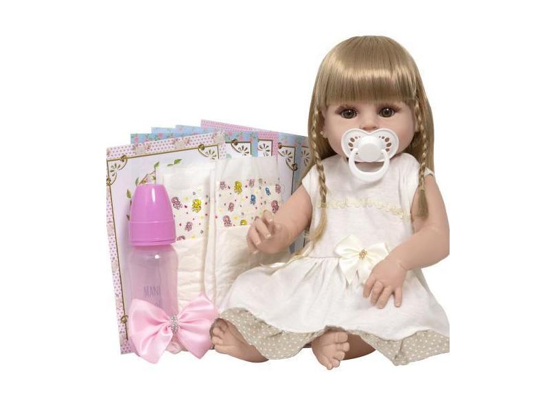Boneca Reborn Loira Sofia 46cm Vestido Bege Lindo + Itens - Cegonha Re