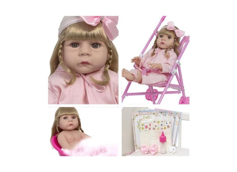 Boneca Reborn Menina Fofa Realista Com Carrinho Infantil - Cegonha Reb