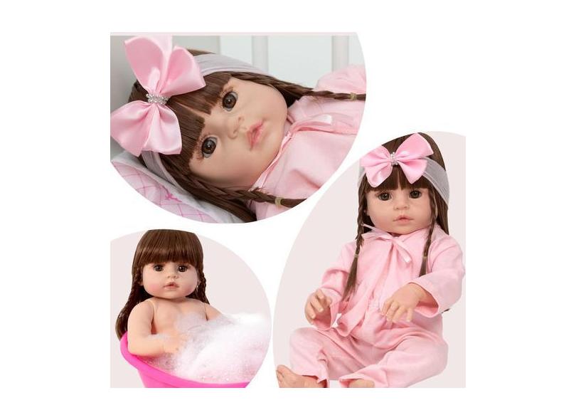 O menor preço encontrado no Brasil para Boneca Reborn Menina Linda Olhos Castanhos Pode Dar Banho - Cegonha Re atualmente é R$ 120,39.