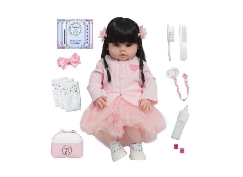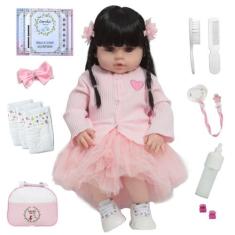 Boneca Reborn Menina Morena Linda Corpo de Vinil Siliconado - Cegonha