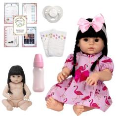 Boneca Reborn Menina Morena Princesa 100% Vinil Pode Banho - Cegonha R