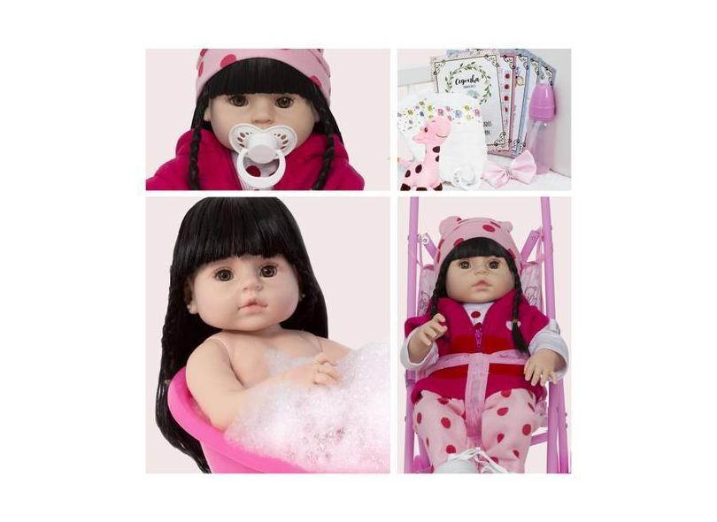 Boneca Reborn Morena Girafinha Grande Enxoval Com Carrinho - Cegonha R