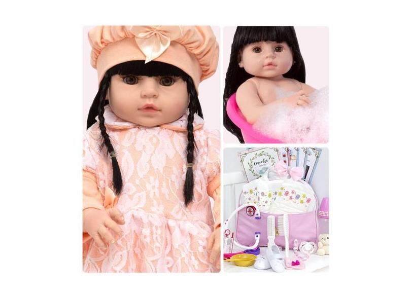 Boneca Reborn Morena Linda 46cm Com Bolsa Acessórios Luxo - Cegonha Re