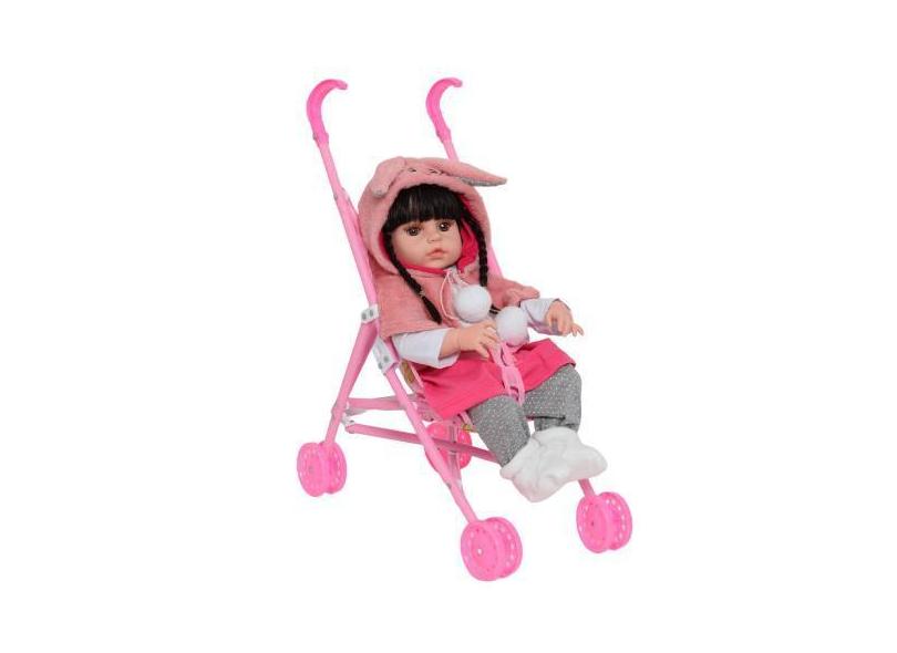 Boneca Reborn Morena Menina Coelhinha Linda Com Carrinho - Cegonha Reb