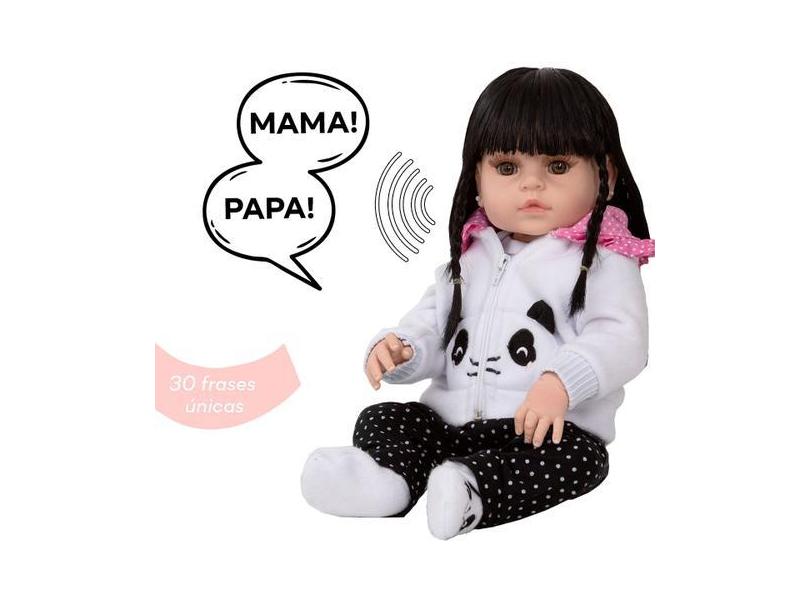 Boneca Reborn Morena Pandinha Linda Com Acessórios 30 Frases - Cegonha
