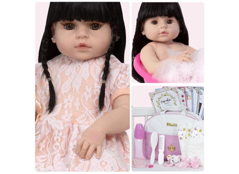 Boneca Reborn Morena Recem Nascida Olho Castanho Acessórios