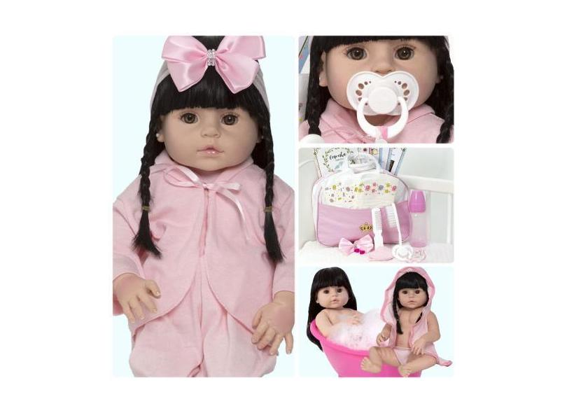 Boneca Reborn Morena Recem Nascida Saída De Banho + Bolsa - Cegonha Re