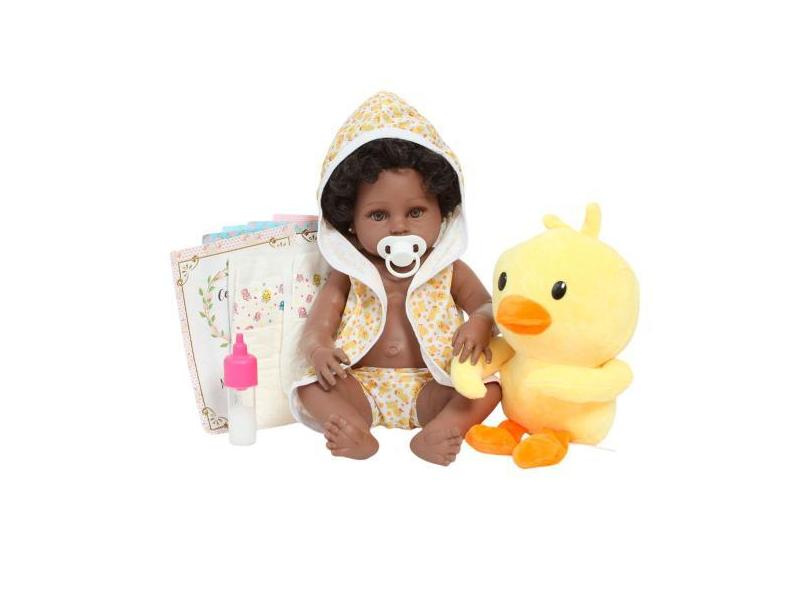 Boneca Reborn Negra Com Saída de Banho Patinho + Kit Itens - Cegonha R