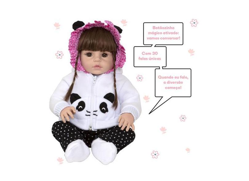 Boneca Reborn Pandinha Nicole 46cm Fala 30 Frases + Itens - Cegonha Re