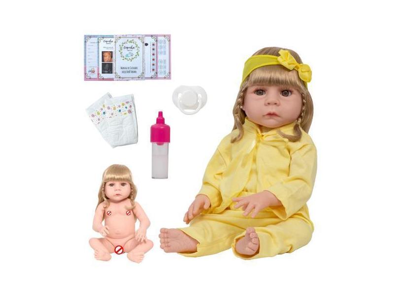 O menor preço encontrado no Brasil para Boneca Reborn Princesa Loira Cabelo Longo Linda Com Chupeta - Cegonha atualmente é R$ 161,59.